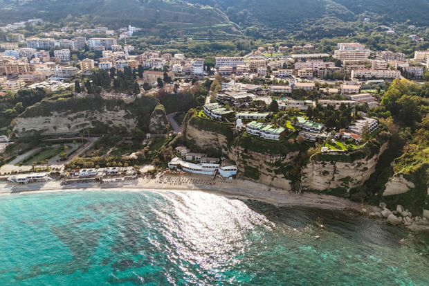 Am Rande einer felsigen Klippe thront das Club Resort in Hanglage oberhalb des Tyrrhenischen Meeres.