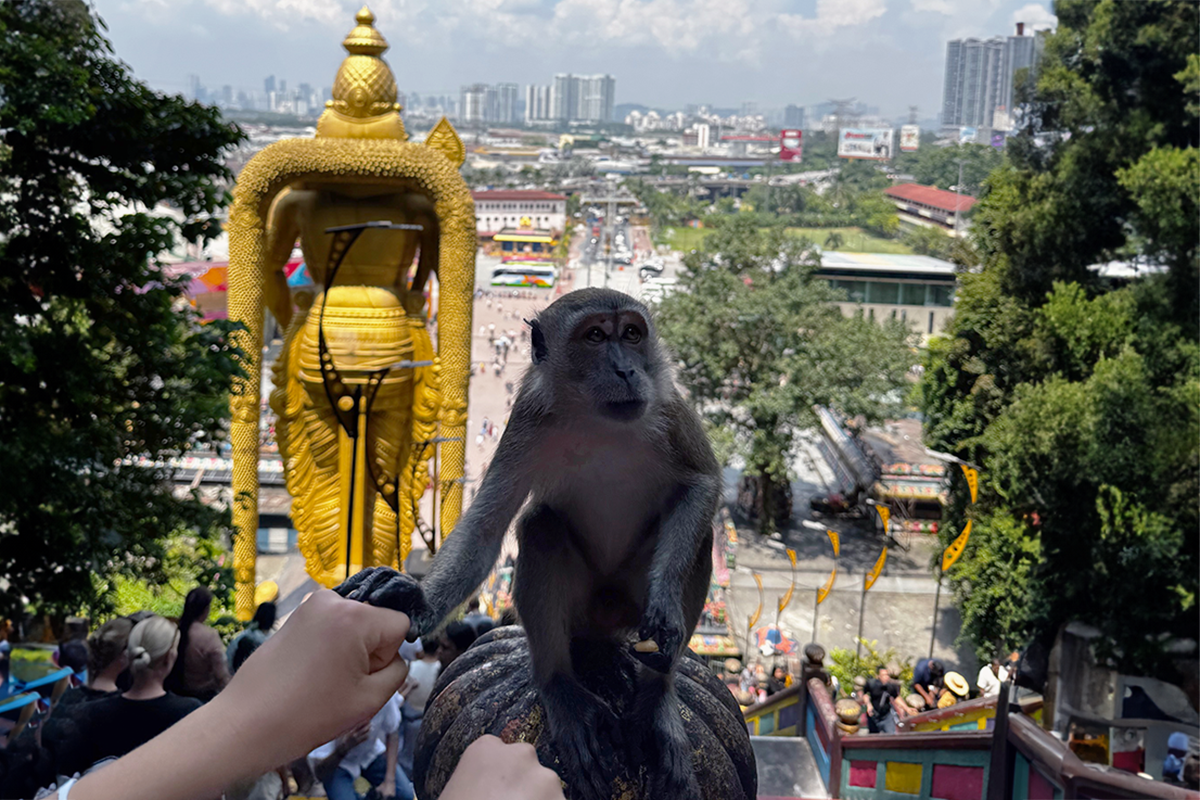 Bereits bei der Anfahrt zum Batu Caves-Tempel (den die Einheimischen liebevoll „die hinduistischen Kalksteinhöhlen“ nennen) stiegen die Erwartungen. Die 272 bunten Stufen hinauf? Für uns keine Hürde – denn unterwegs warteten freche Makaken, die viel spannender waren als jede Stufe. Einziger Tipp: Handy und Sonnenbrille gut festhalten, die kleinen „Affendiebe“ sind schnell und geschickt! Oben eröffnet sich ein prachtvoller Schrein, in dem farbenfrohe Götterfiguren und Räucherstäbchen für eine magische Atmosphäre sorgen. Für die Kids ein echtes Abenteuer – und für uns Erwachsene ein Ort voller Spiritualität und Fotomotive.