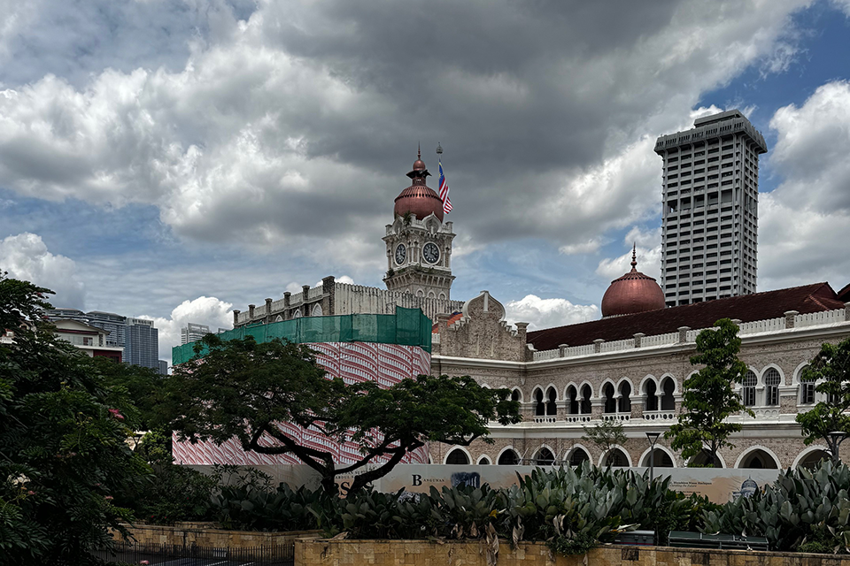 Ein kurzer Abstecher führte uns zum historischen Sultan Abdul Samad Building am Merdeka Square – ein wahrer Fotoklassiker mit maurischen Bögen und kupfernen Kuppeln. Gleich in der Nähe steht die Masjid Jamek, einer der ältesten Moscheen der Stadt. Ihr ruhiger Innenhof und die hohen Säulen sind in starkem Kontrast zum geschäftigen Treiben ringsherum und bieten eine willkommene Erholungspause.