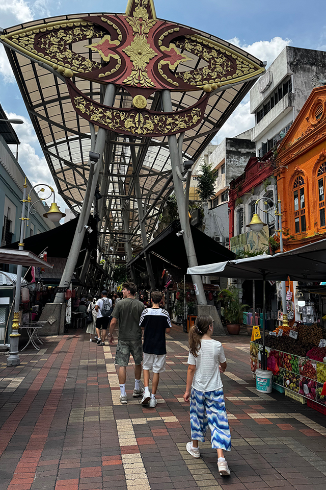 Chinatown in Kuala Lumpur pulsiert vor Leben. Am Nachmittag ist der Trubel noch überschaubar, perfekt für Familien mit Kindern: Tolle Street-Food-Stände, bunte Souvenir-Läden und enge Gassen, in denen man immer wieder Neues entdecken kann. Nach Einbruch der Dunkelheit verwandelt sich die Petaling Street: Weitere Marktstände reihen sich in der Mitte auf, es wird noch enger, bunter und lebendiger. Hier kann man wunderbar handeln, Naschereien probieren und beim Kinder-Trubel gemütlich durch die Menschenmenge schlendern.