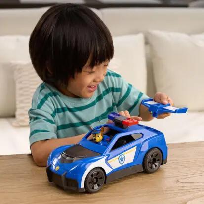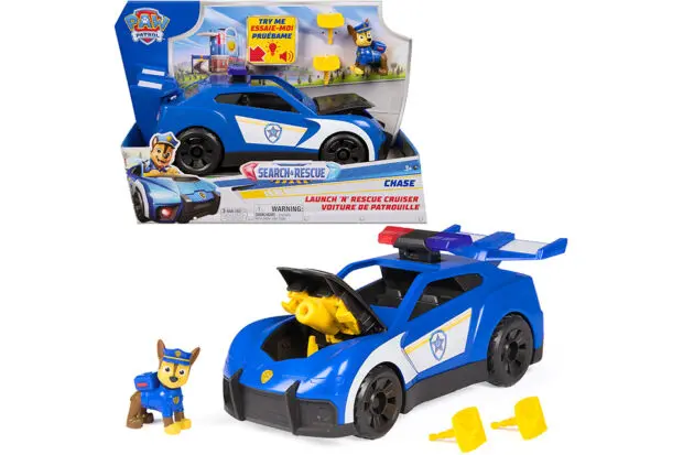 Auf Polizeihund Chase ist immer Verlass! In den neuen Serienepisoden Paw Patrol Search & Rescue (seit Februar 2026 bei TOGGO) meistert er mit seinem Team jede Rettungsmission. Um auf Gefahrensituationen optimal reagieren zu können, bekommt der Polizeiwelpe jetzt brandneue Ausstattung: Am Steuer seines Search & Rescue Polizei-Fahrzeugs startet Chase als Freund und Helfer in der Abenteuerbucht durch. Licht- und Soundeffekte sowie ein versteckter Netzwerfer machen jeden Einsatz mit diesem Polizeiauto zum spannenden Abenteuer! Der Spoiler des wendigen Boliden kann sich sogar in eine Drohne verwandeln, um höher gelegene Einsatzorte zu erreichen! Das Fahrzeug ist wie geschaffen dafür, Lieblingsszenen aus der Serie, den Hörbüchern oder dem Paw Patrol Film nachzuspielen oder neue Abenteuer mit Freunden zu erfinden.