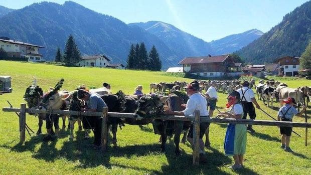 Der Almabtrieb ist mit Musik und vielen Ständen.